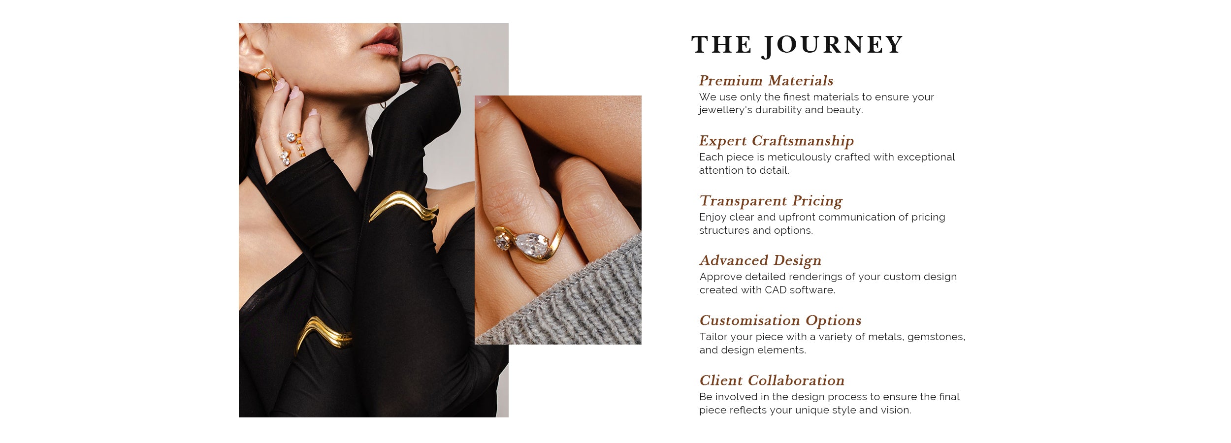 Discover the elegance of personalized adornments with our customised jewellery collection. Each piece is crafted to reflect your unique style and story. From bespoke necklaces to tailored bracelets, our artisans ensure every detail resonates with your individuality, making each creation a true masterpiece.