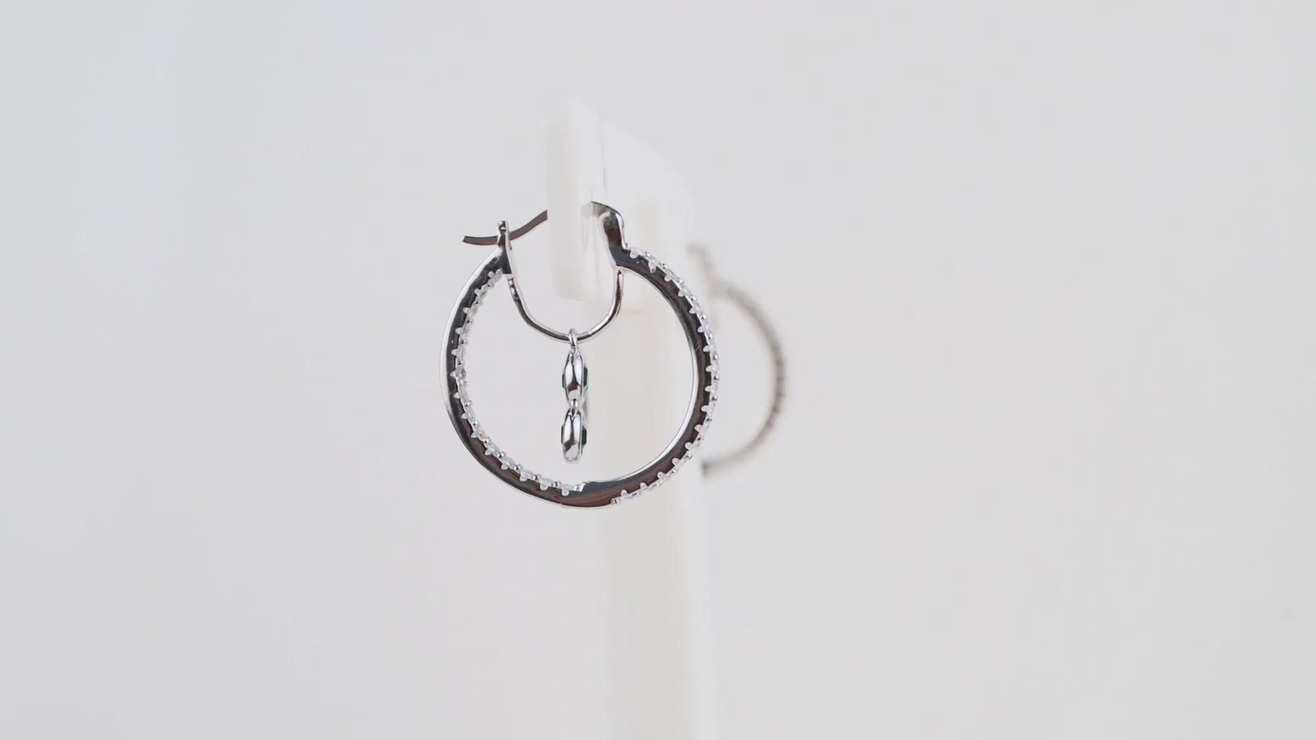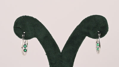 925 Silver Green Cz Drops Bali Hoop Earrings