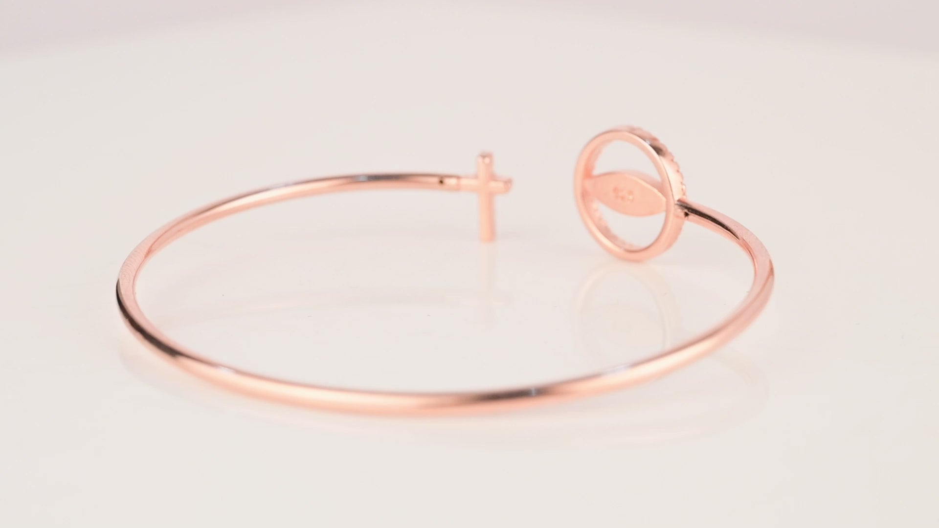 Evil Eye Charm Rose Gold Bangle in 925 Silver