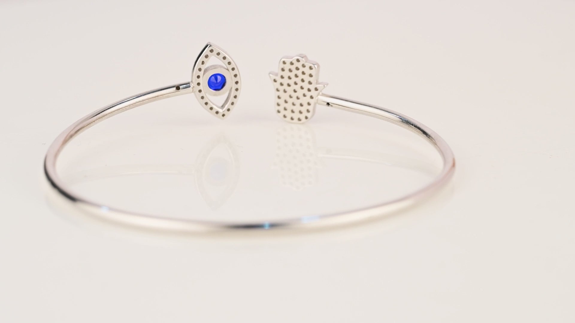 Evil Eye Hamsa Charm Adjustable Silver Bangle
