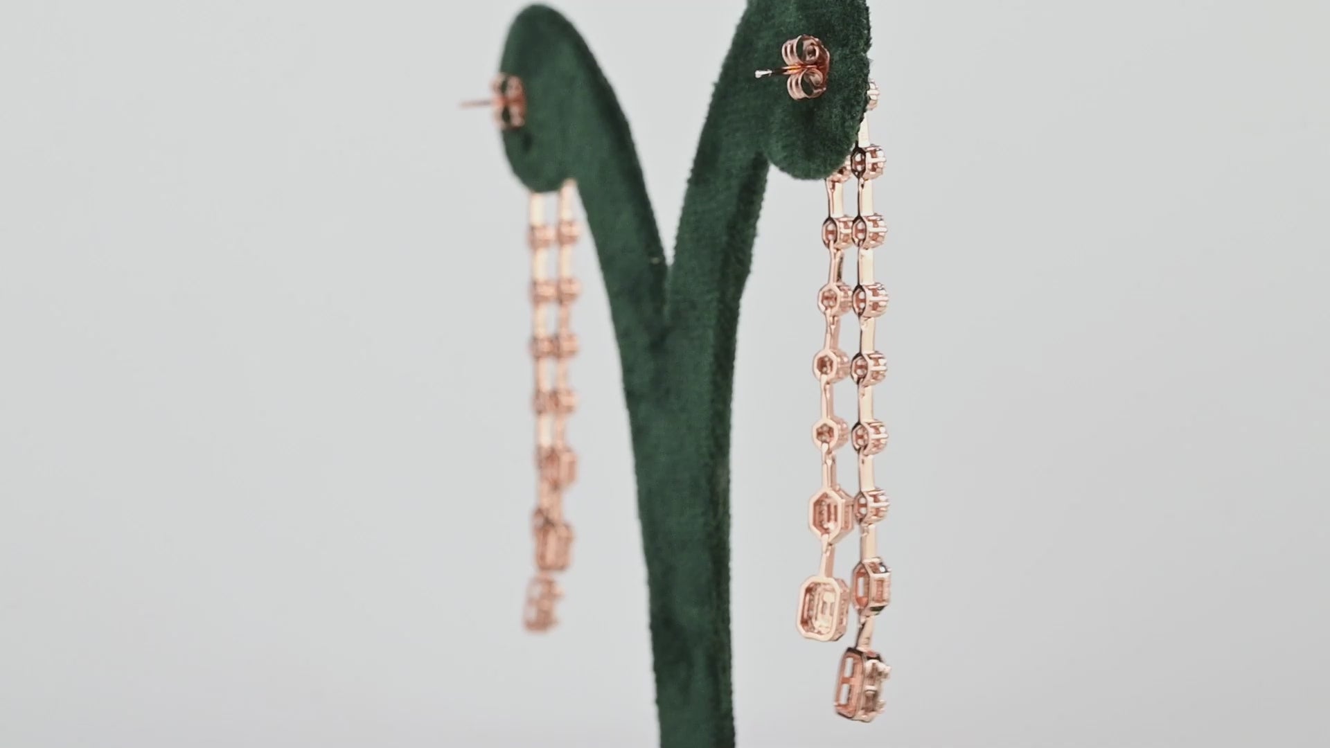 Rose Gold Linear Drop CZ Diamond Dangle Earrings