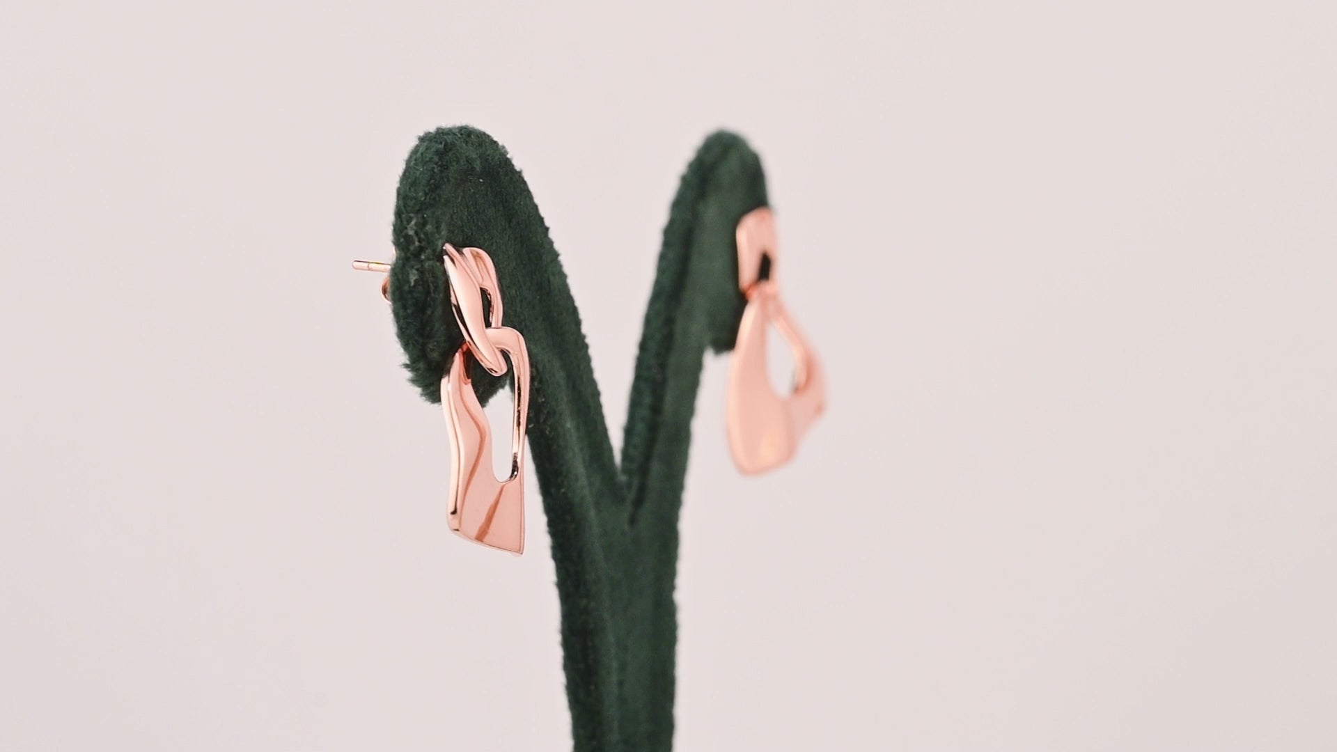 Trendy Twisted Silver Stud Earrings in Rose Gold Finish